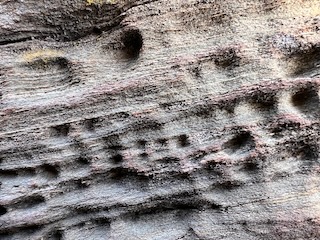 Cela m’a étrangement ramené au Cap Corse et à ces strates dans la pierre, ces successions de couches, ces traces gravées par le vent, le sel, les embruns. Il y avait sans doute ces nuances de gris en commun, et des parallèles sur le temps qui passe, ce qui nous imprime. Des traits, des épaisseurs, des lignes, ( de fuite ?) qui dessinent, racontent quelque chose de nous . D’enfoui. En surface et en profondeur. D’intime et de commun.